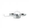 Set nerezového riadu s úsporou priestoru v štýle Matrioška so stupnicou objemu vo vnútri hrnca, pozostávajúci z hrnca, panvice a misy, vrátane tašky na prenášanie.