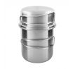 Klasický nerezový pohár s objemom 600 ml a vnútornou objemovou stupnicou. Skadacie rúčky, vrchnák s rúčkou.