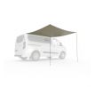 Slnečná strieška s uchytením pre obytné prívesy rôznych značiek. Vyrobené z bavlnenej zmesi odolnej voči roztrhnutiu s veľmi dobrou UV stálosťou.