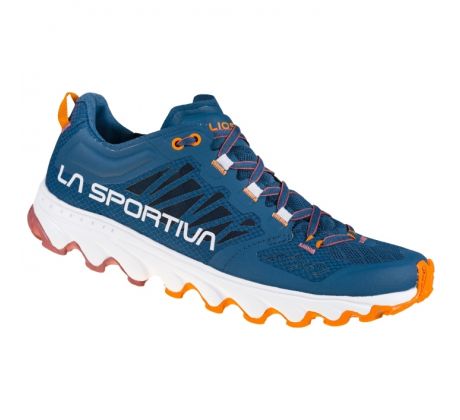 Helios III je bežecká obuv „od dverí k chodníkom“ určená na tréning a preteky na tvrdom teréne. Je to produkt pre voľný čas s ľahkými a priedušnými zvrškami vyrobený z jedinečnej, termoadhezívnej kombinácie látky s potlačou rip-stop, jednostrannej siete a vystuženej sendvičovej siete TPU. Fit je mimoriadne pohodlný vychádza z modelu Helios SR. Dezén používa vysoko odolnú zmes FriXion Blu: ideálny pre použitie na tvrdom a skalnatom teréne. Termoformovaná špička prispieva k celkovej ľahkosti produktu a pomáha chrániť ho pred nárazmi a odermi. Vstrekovaná medzipodošva EVA s technológiou MorphoDynamic zaručuje vysoké odpruženie, ktoré bolo typické pre model Helios od jeho uvedenia na trh, zatiaľ čo vložka odpruženej platformy zvyšuje jej tlmiace vlastnosti a celkový komfort. Helios III: znovu je čas letieť.