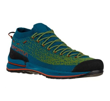 Podošva je navrhnutá pre rýchlu a jednoduchú výmenou podrážky výhradne v autorizovaných predajniach La Sportiva. Zvršok je bezšvový a veľmi obopínajúci vďaka integrovanému jazyku, ktorý eliminuje medzery a obaľuje chodidlo pre maximálne pohodlie a ochranu. Látka použitá na zvršok, šnúrky, stielka Ortholite® Hybrid Approach a časť EVA medzipodošvy sú tiež vyrobené z recyklovaných a vegánskych priateľských materiálov. Podošva Vibram® IdroGrip s lezeckou zónou navrhnutá pre maximálnu priľnavosť v technickom teréne. TX2 Evo: obnova, opätovné použitie, opätovné podlepenie.