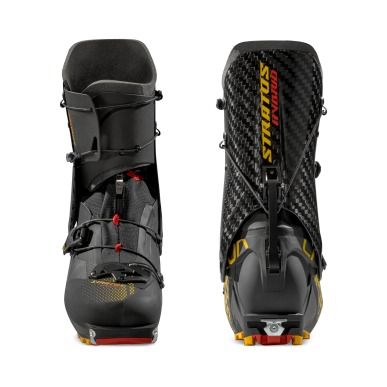 Stratos Hybrid je topánka určená pre pokročilých backcountry lyžiarov a skialpinistov, ktorá kombinuje to najlepšie z oboch svetov: kompozitnú škrupinu Grilamid Bio Based LF Carbon™ a celokarbónový driek Stratos VI, ručne vyrobený v Ziano di Fiemme.Mechanizmus chôdze na lyžiach a horný systém zapínania sú prevzaté priamo zo špičkového modelu Stratos VI - zmena nastavenia ešte nikdy nebola taká rýchla a efektívna. Podrážka FriXion Wave Race™ a predná a zadná lavička sú v súlade s IFSM a napokon sú vybavené integrovanou gamašou proti vnikaniu snehu, čo zaručuje ochranu aj počas tréningu alebo veľkých alpských tratí.